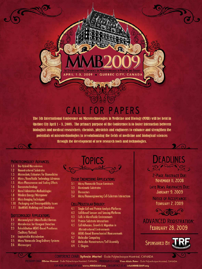 ■ 5th International Conference on Microtechnologies in Medicine and Biology · Date : April 1-3, 2009 · Place : Quebec city, Canada