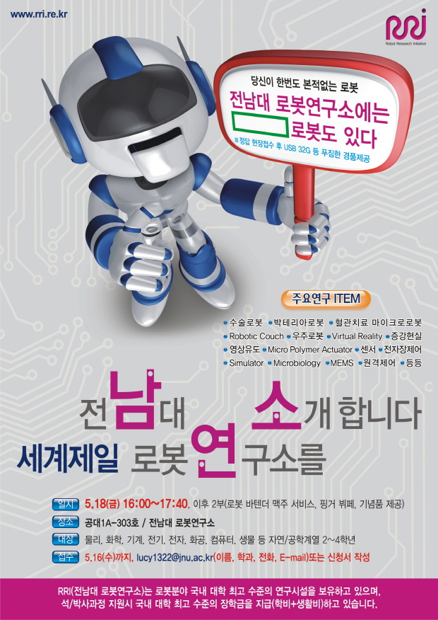 | Subject | 전남대 로봇연구소 Open Lab 개최 안내 | ||||